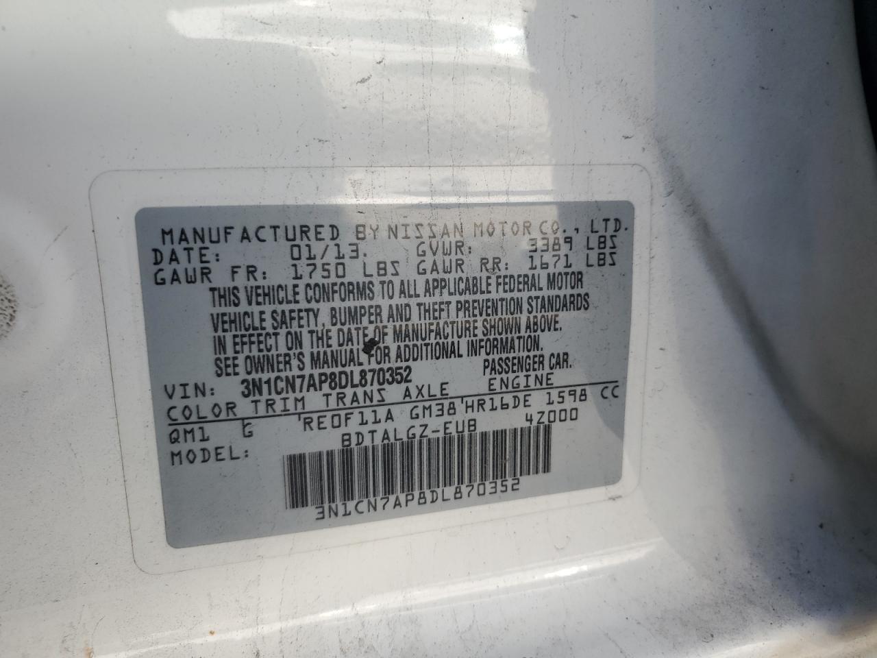 Колір БілийЦиліндри 4VIN 3N1CN7AP8DL870352Стан Заводиться та їде (перевірено)Ушкодження Задня