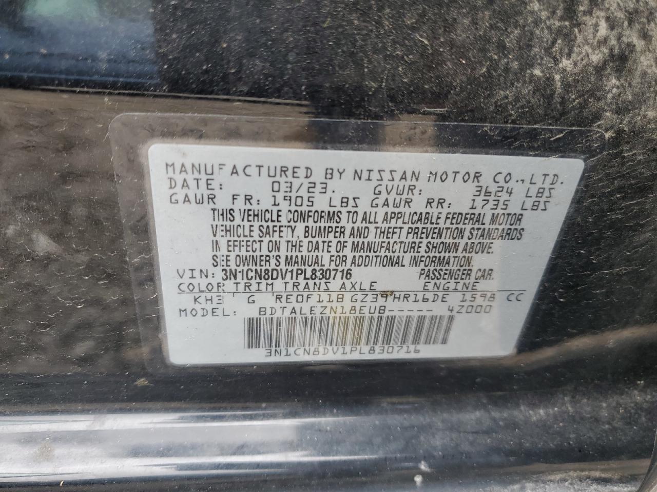 Колір ЧорнийЦиліндри 4VIN 3N1CN8DV1PL830716Стан Заводиться та їде (перевірено)Ушкодження Передня або задняДата аукціону 2025-11-05