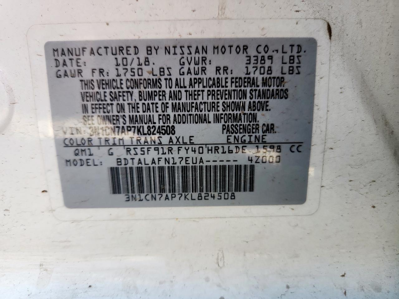 Колір БілийЦиліндри 4VIN 3N1CN7AP7KL824508Стан Заводиться та їде (перевірено)Ушкодження Передня або задня