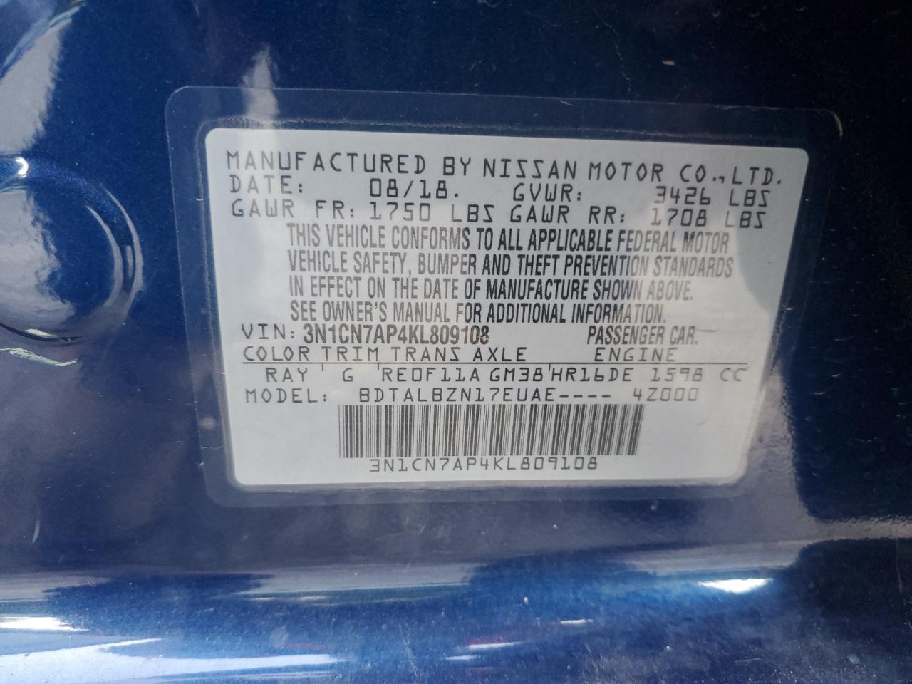 NISSAN VERSA 1.6 2019 р.в., (3N1CN7AP4KL809108) з США