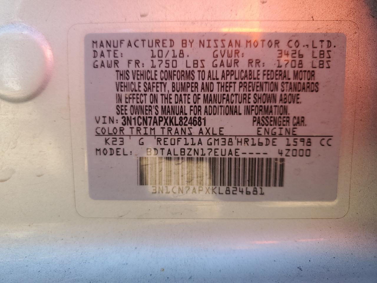 NISSAN VERSA 1.6 2019 р.в., (3N1CN7APXKL824681) з США
