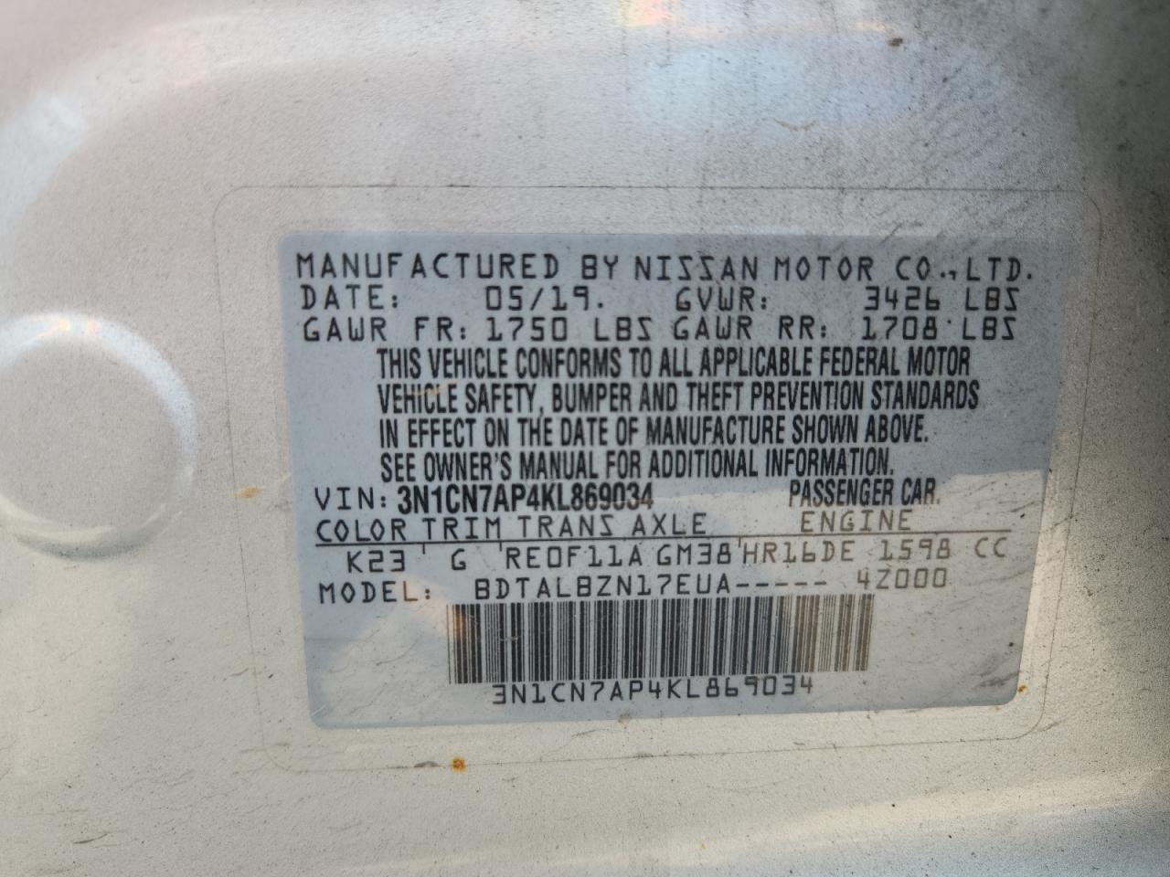 NISSAN VERSA 1.6 2019 р.в., (3N1CN7AP4KL869034) з США