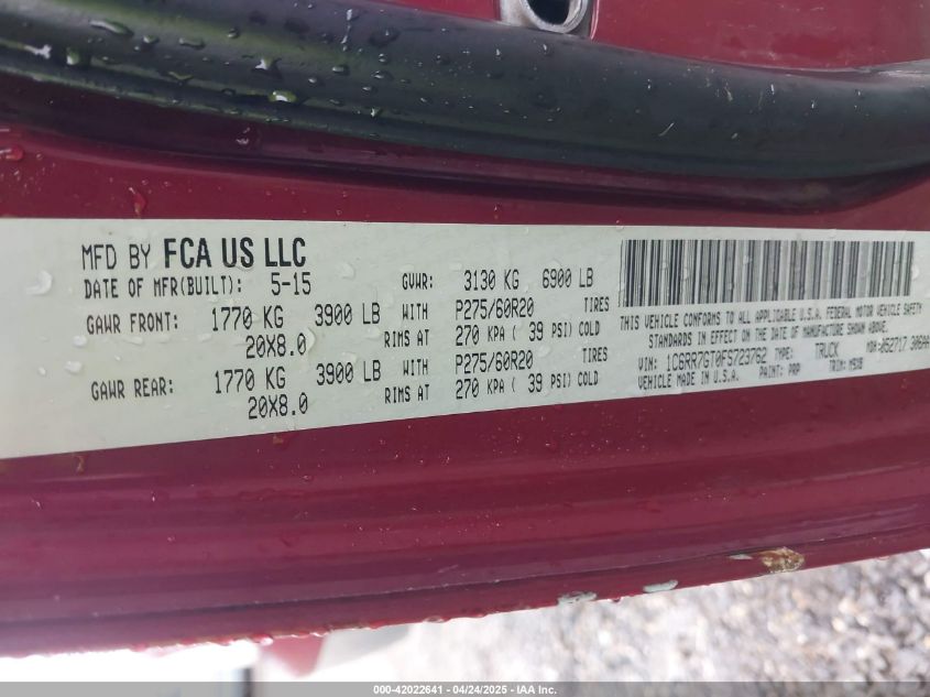 RAM 1500 5.7 2015 р.в., Повний привід (1C6RR7GT0FS723762) з США