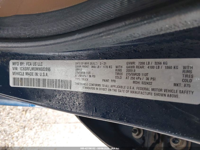 RAM 1500 3.0 2021 р.в., Повний привід (1C6SRFJM0MN682896) з США