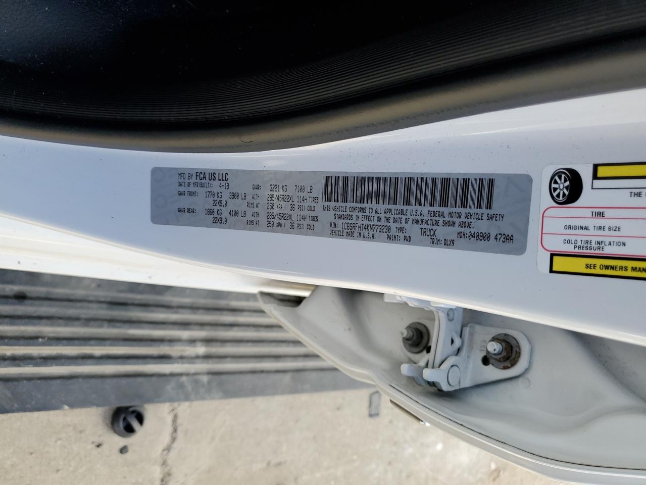 Колір БілийЦиліндри 8Привід 4x4 з заднім приводомVIN 1C6SRFHT4KN773230Стан НевідомоУшкодження Передня або задня