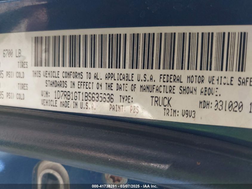 Колір СинійЦиліндри 8VIN 1D7RB1GT1BS635636Стан Заводиться та їде (перевірено)Ушкодження Ліва сторона