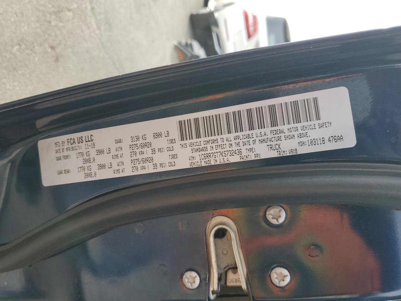 Колір СинійЦиліндри 8Привід 4x4 з заднім приводомVIN 1C6RR7GT7KS732436Стан Заводиться та їде (перевірено)Ушкодження Передня або задняДата аукціону 2025-11-10