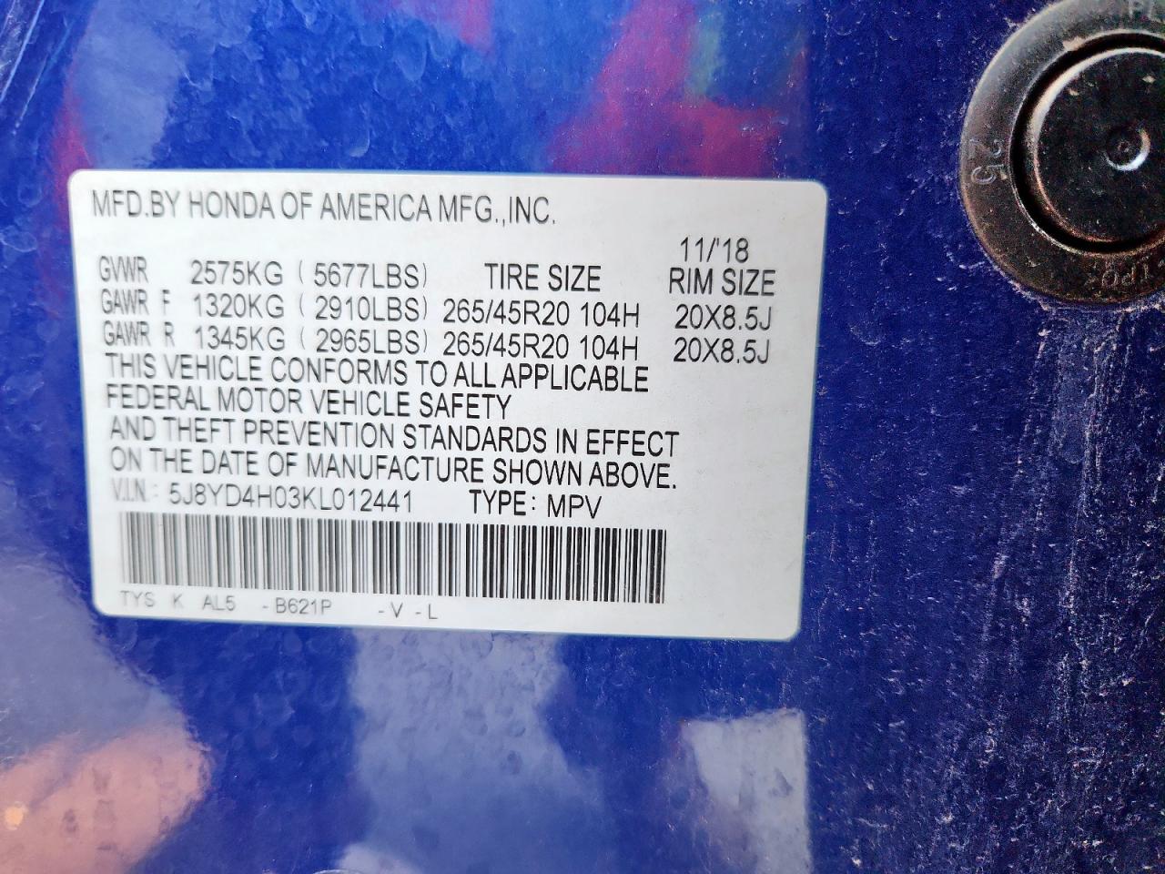 Цвет СинийЦилиндры 6Привод Полный приводVIN 5J8YD4H03KL012441Состояние Заводится и едет (проверено)Повреждение Передняя или задняя