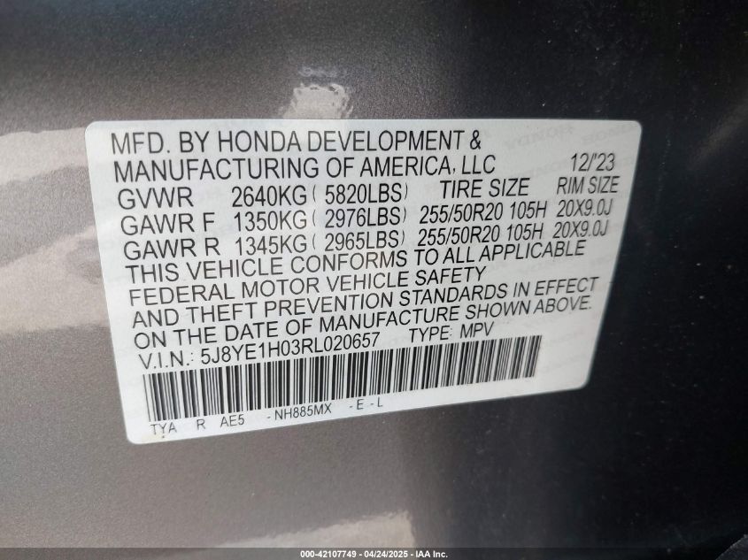 ACURA MDX 3.5 2024 г.в., Полный привод (5J8YE1H03RL020657) из США