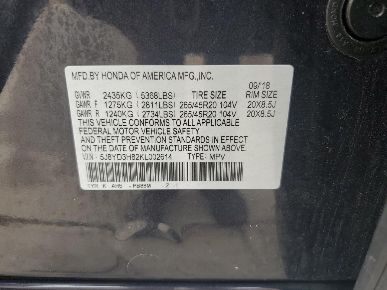 ACURA MDX 3.5 2019 г.в., (5J8YD3H82KL002614) из США