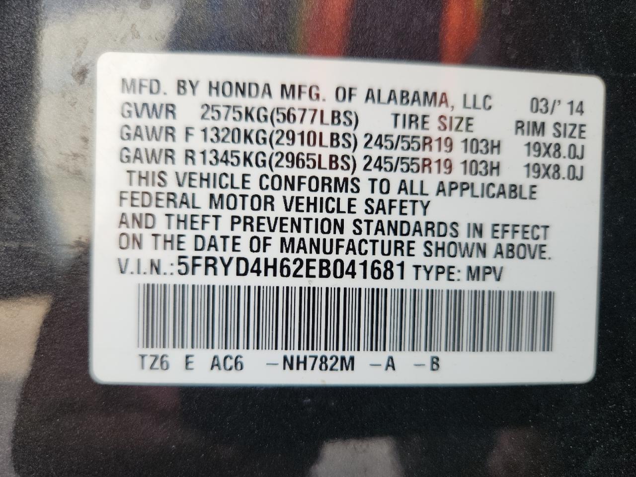 Цвет Древесный угольЦилиндры 6Привод Полный приводVIN 5FRYD4H62EB041681Состояние Заводится и едет (проверено)Повреждение Передняя или задняяДата аукциона 2025-11-05
