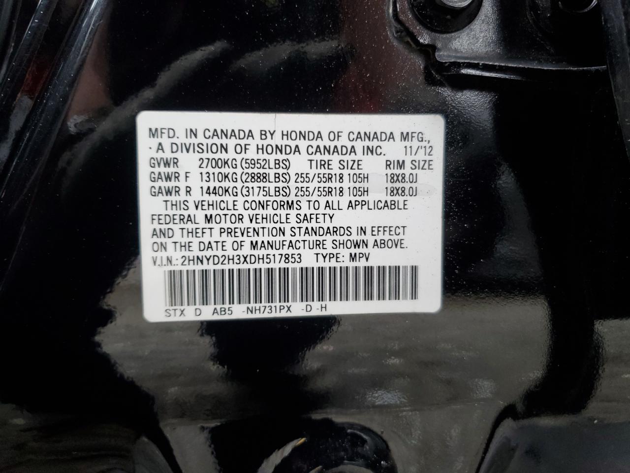 ACURA MDX 3.7 2013 г.в., Полный привод (2HNYD2H3XDH517853) из США