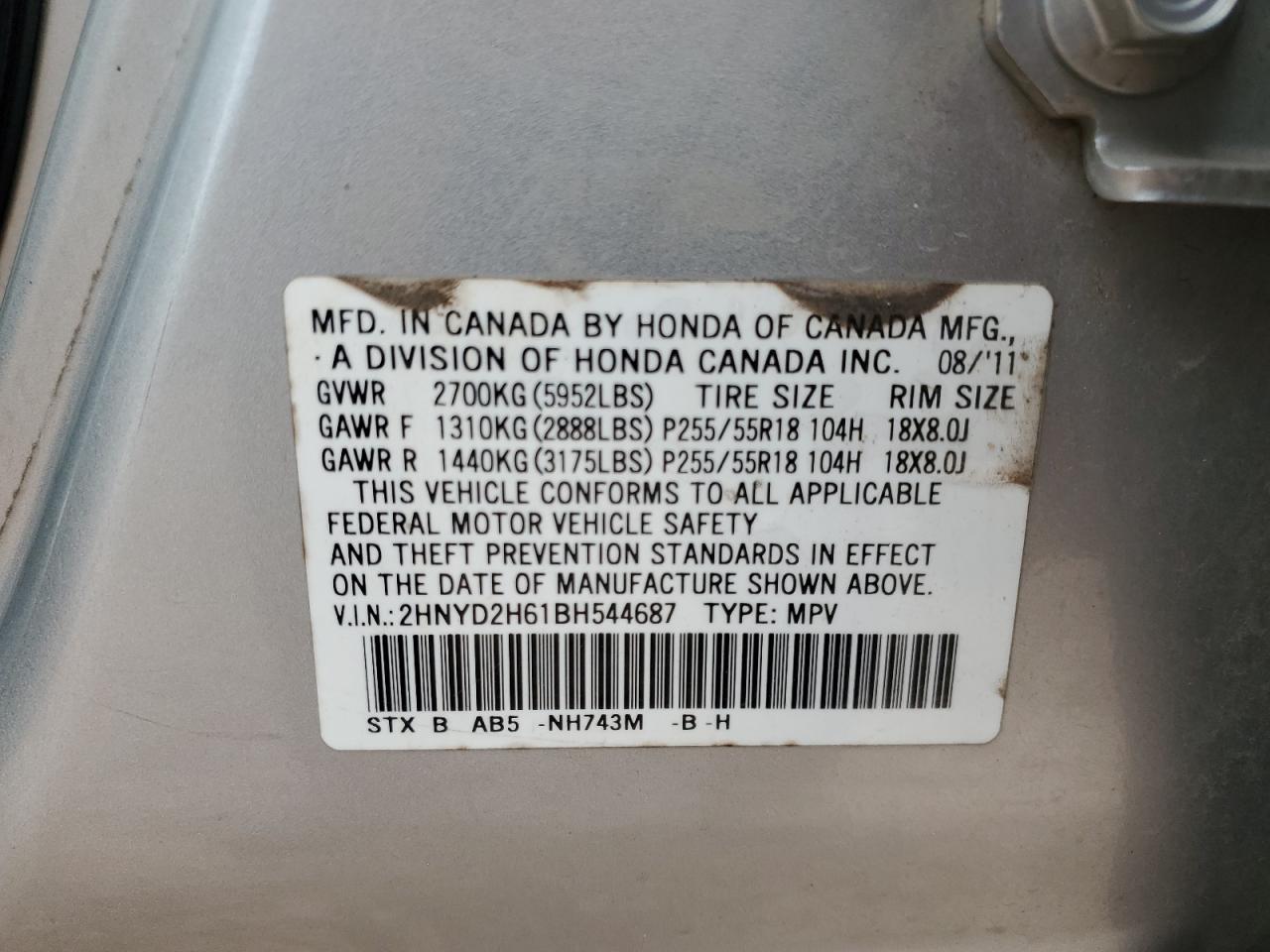 Цвет СеребряныйЦилиндры 6Привод Полный приводVIN 2HNYD2H61BH544687Состояние НеизвестноПовреждение По бокамДата аукциона 2025-11-06
