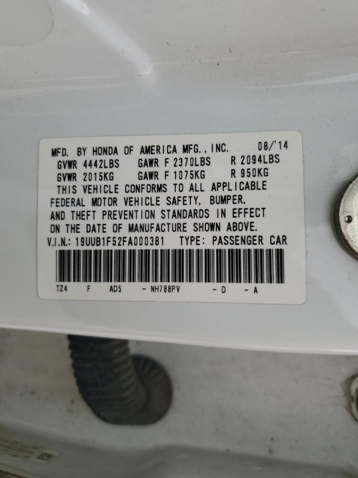 Цвет БелыйЦилиндры 4VIN 19UUB1F52FA000381Состояние Заводится и едет (проверено)Повреждение Передняя или задняяДата аукциона 2025-11-05