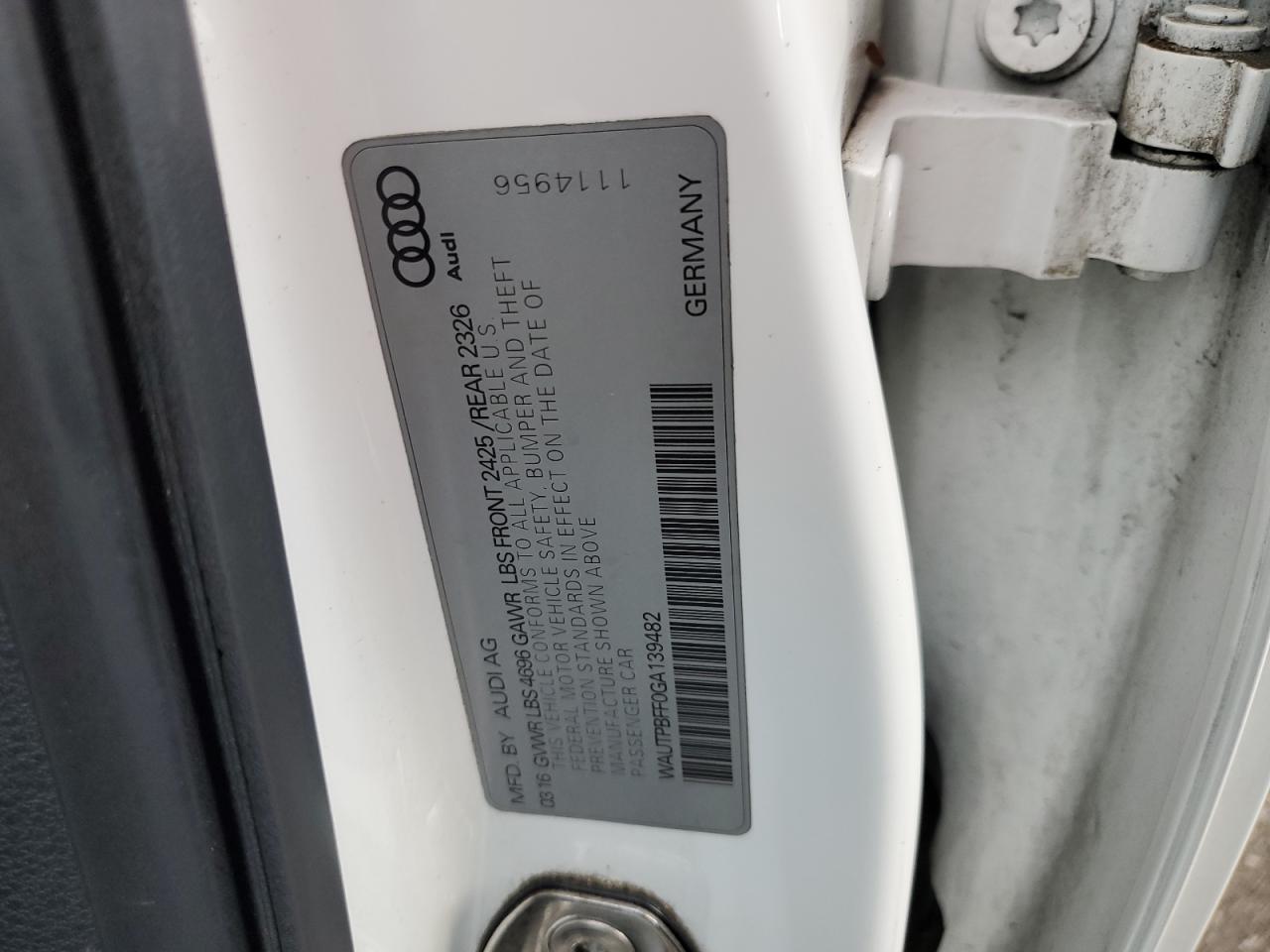 Цвет БелыйЦилиндры 4VIN WAUTPBFF0GA139482Состояние Заводится и едет (проверено)Повреждение Передняя или задняя