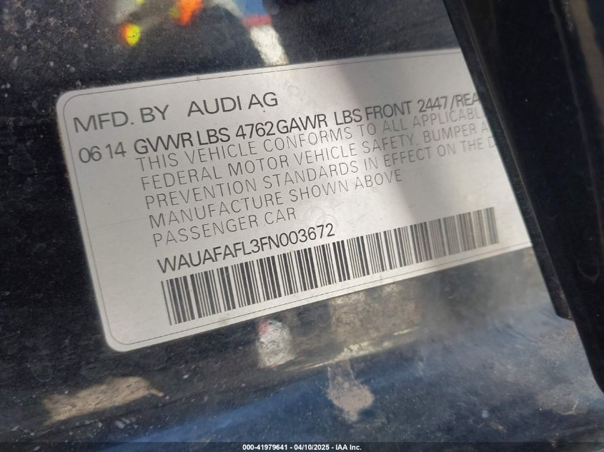 AUDI A4 2.0 2015 г.в., Передний привод (WAUAFAFL3FN003672) из США