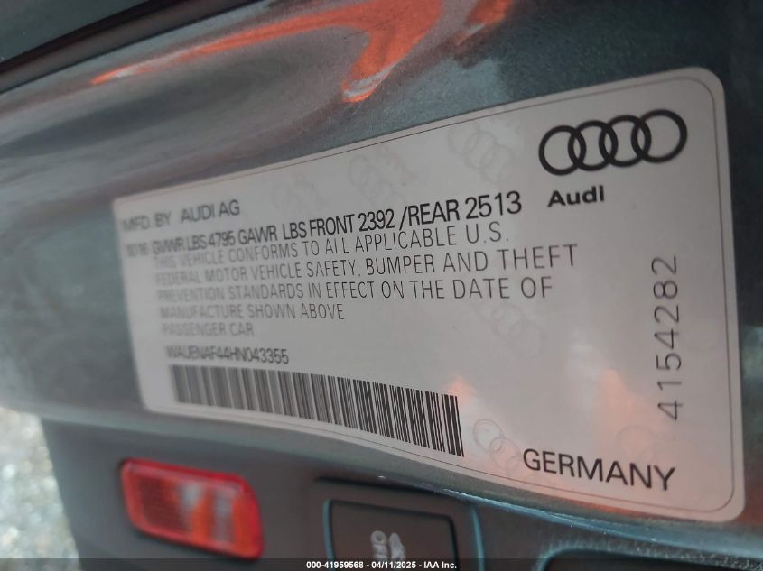AUDI A4 2.0 2017 г.в., Полный привод (WAUENAF44HN043355) из США