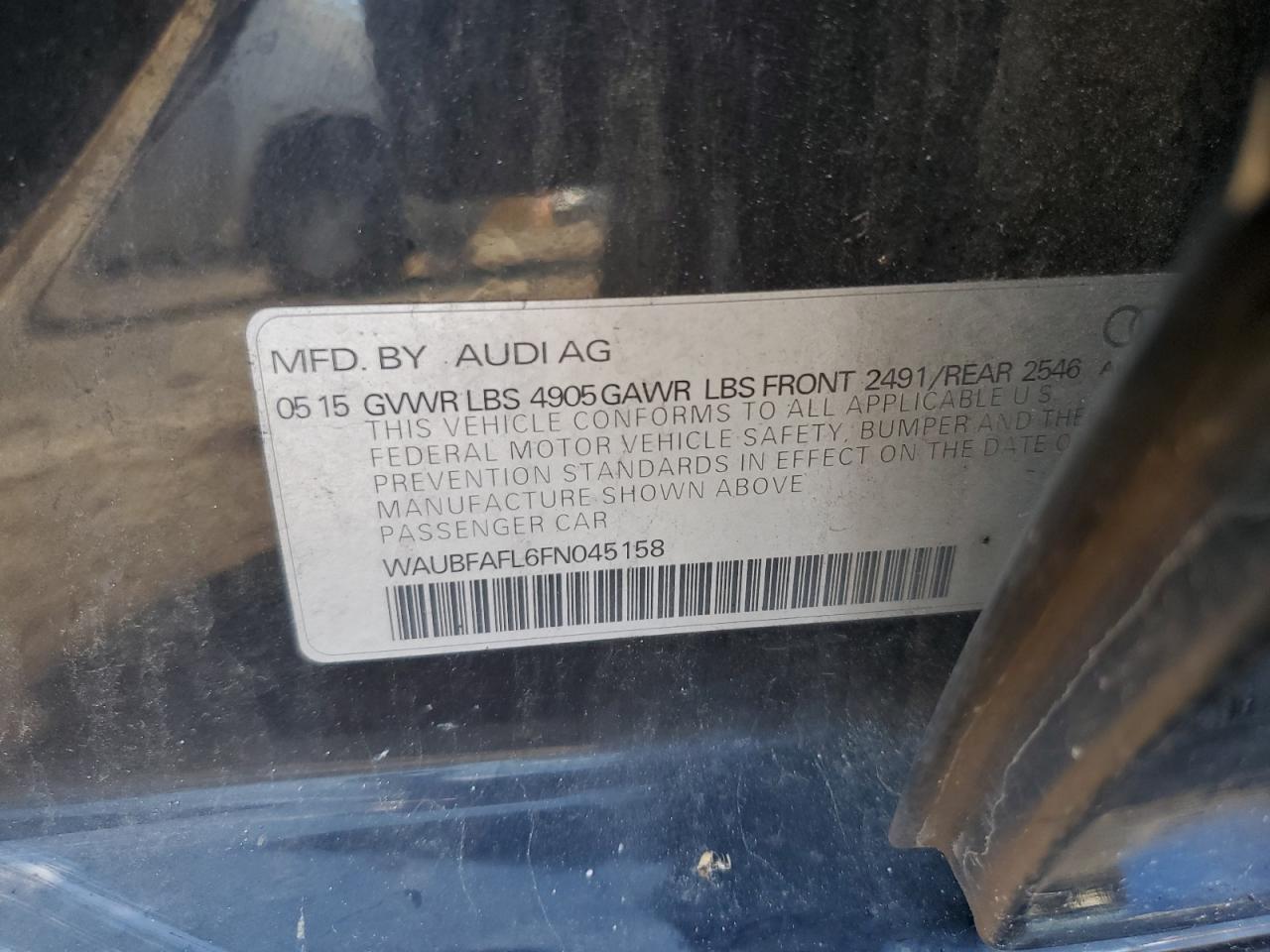 AUDI A4 2.0 2015 г.в., Полный привод (WAUBFAFL6FN045158) из США