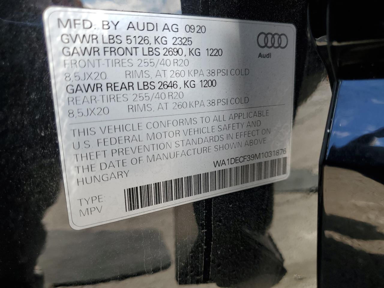 AUDI Q3 2.0 2021 г.в., Полный привод (WA1DECF39M1031876) из США