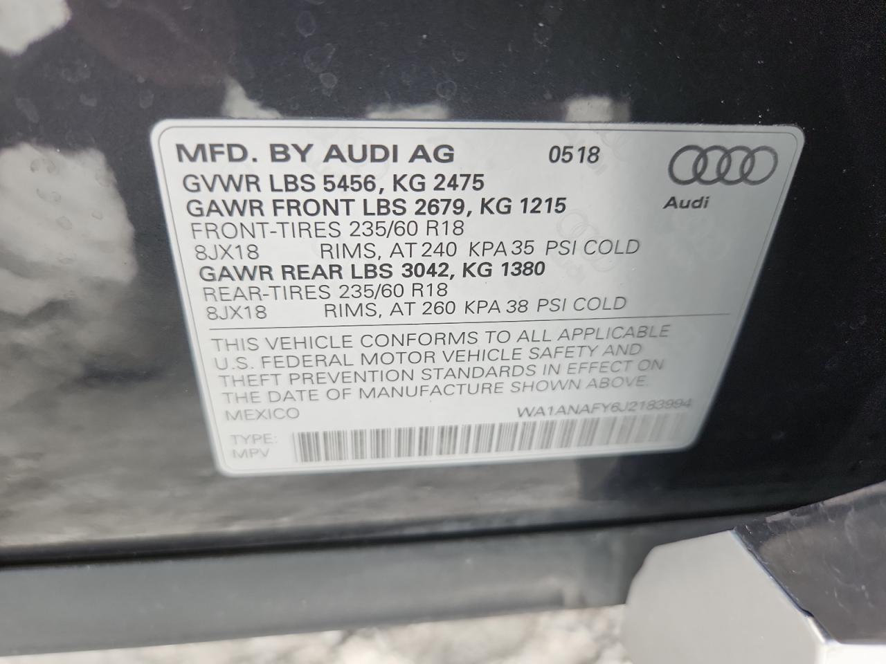 AUDI Q5 2.0 2018 г.в., Полный привод (WA1ANAFY6J2183994) из США