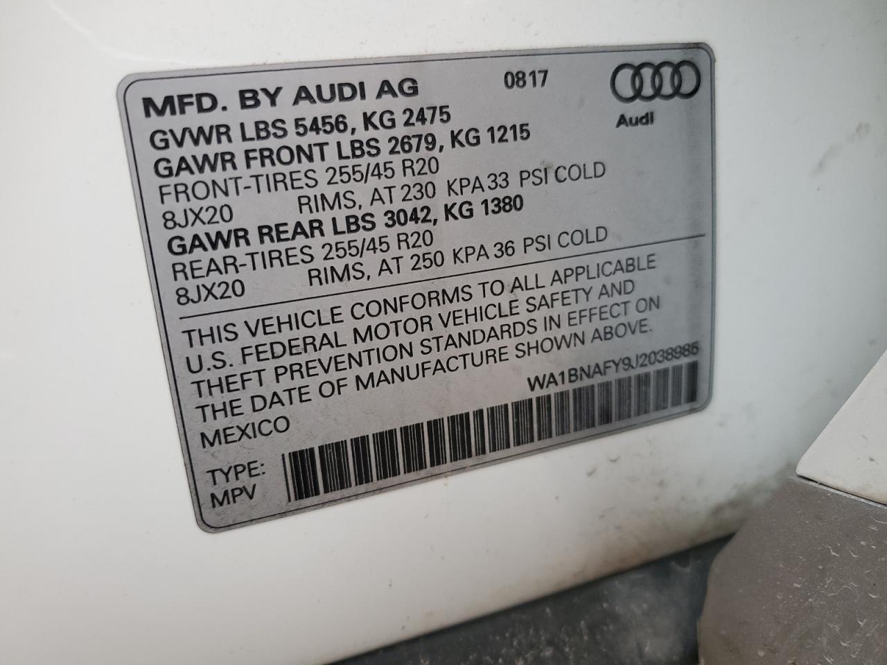 AUDI Q5 2.0 2018 г.в., Полный привод (WA1BNAFY9J2038985) из США