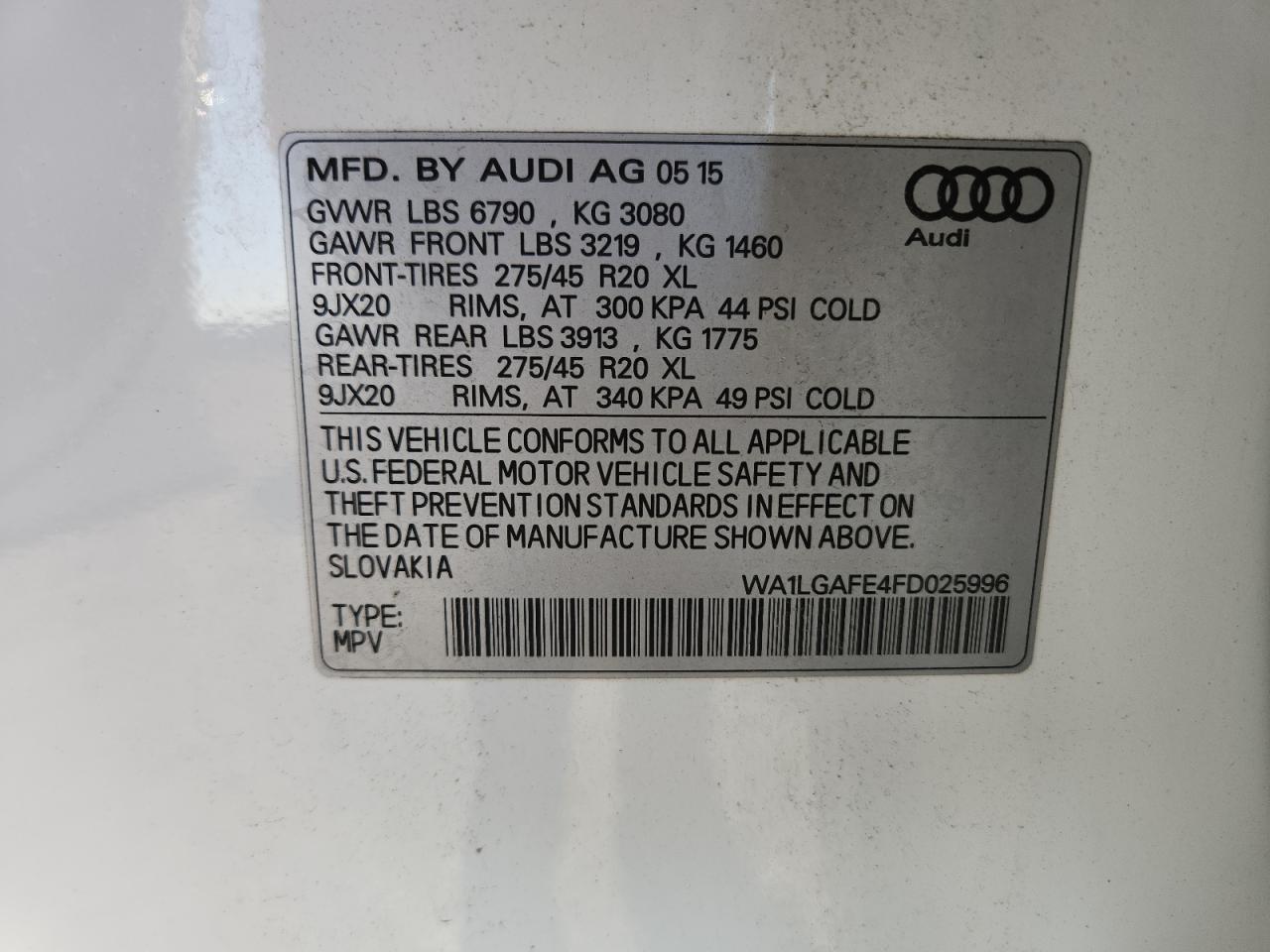AUDI Q7 3.0 2015 г.в., Полный привод (WA1LGAFE4FD025996) из США