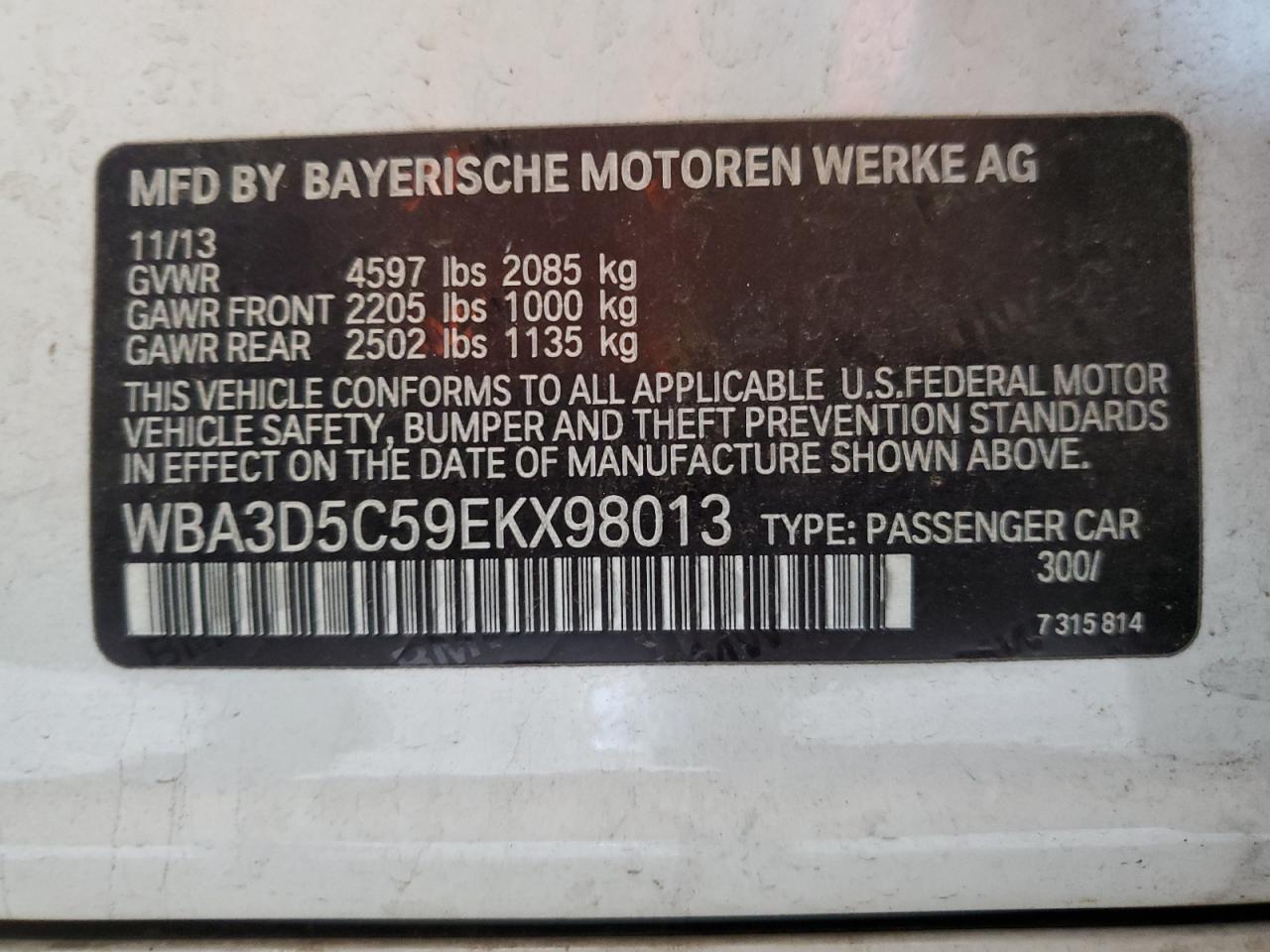 2014 BMW 3 SERIES I SULEV