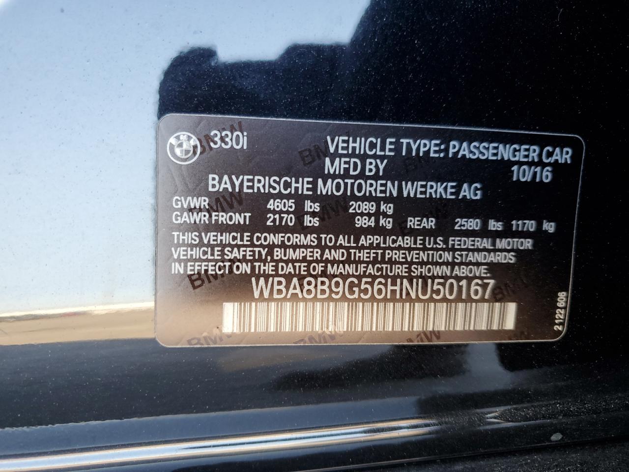BMW 3 SERIES 2.0 2017 г.в., Задний привод (WBA8B9G56HNU50167) из США