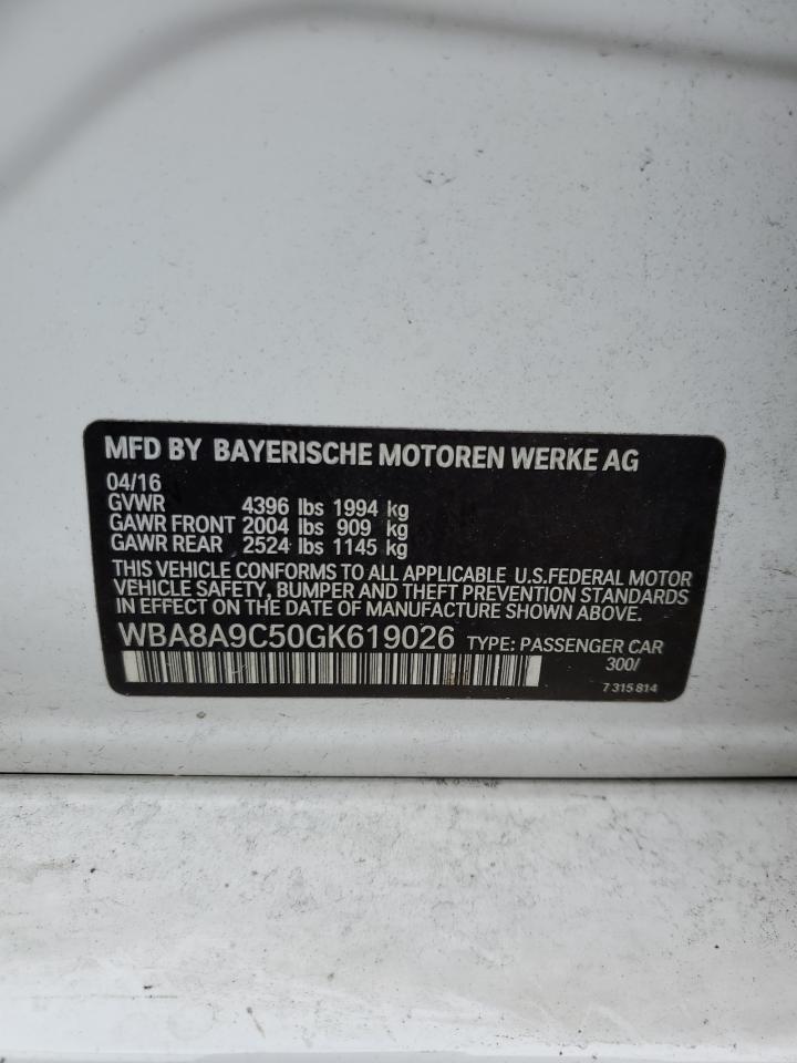 BMW 3 SERIES 2.0 2016 г.в., Задний привод (WBA8A9C50GK619026) из США
