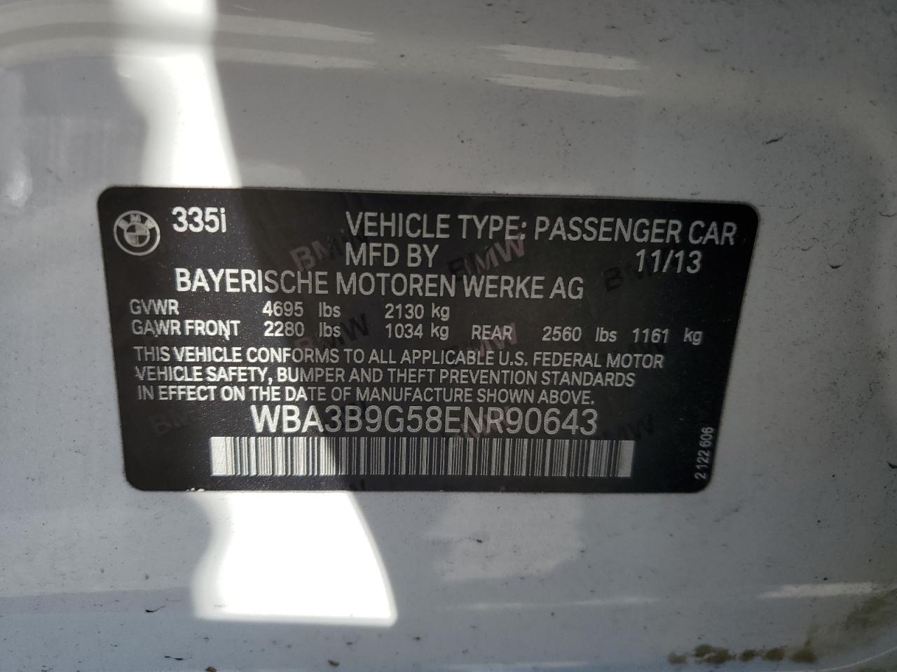 BMW 3 SERIES 3.0 2014 г.в., Полный привод (WBA3B9G58ENR90643) из США