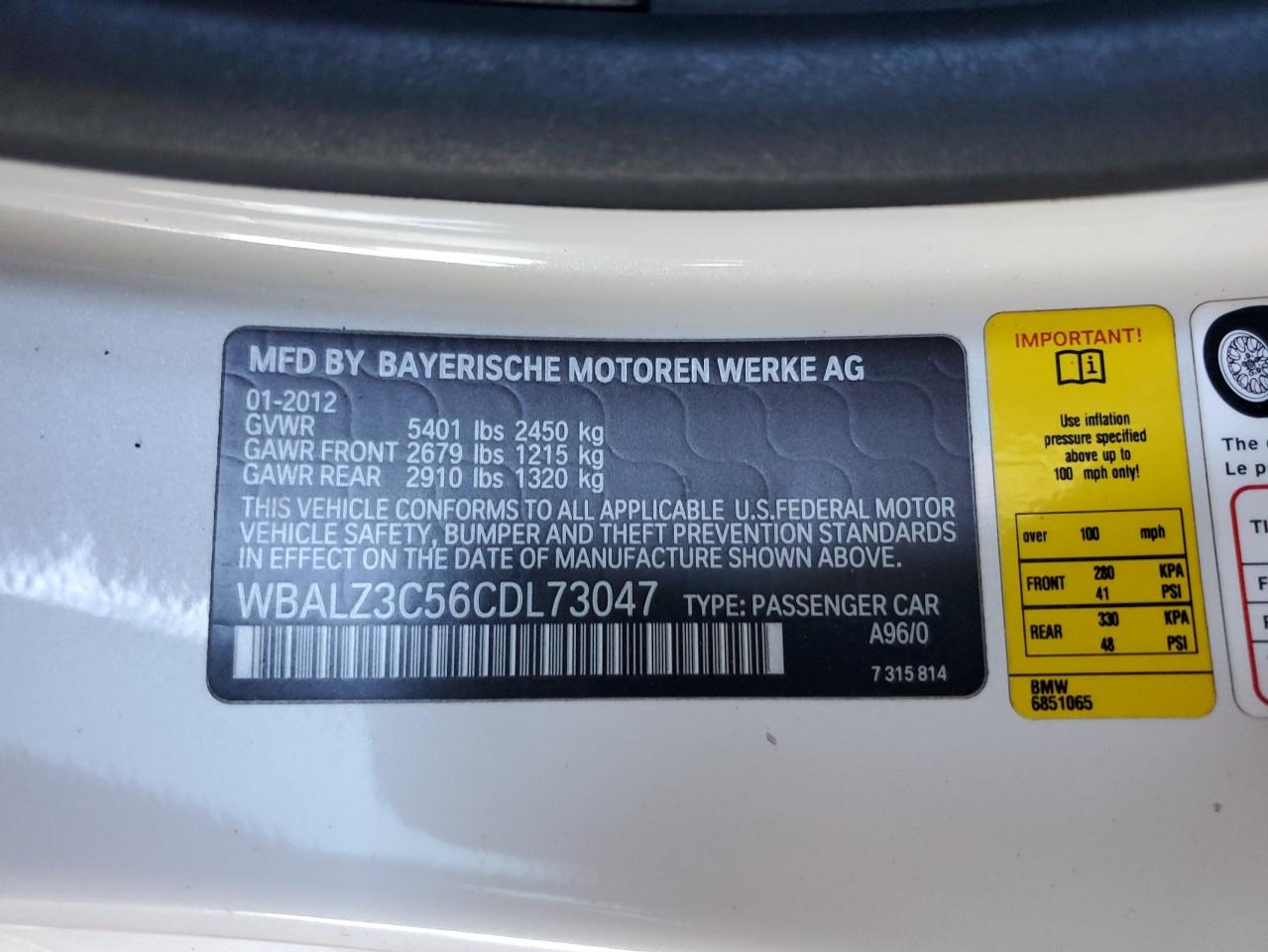 2012 BMW 6 SERIES XDRIVE