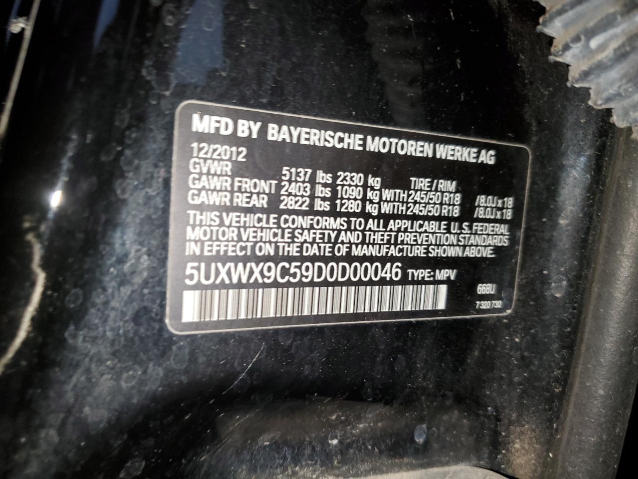 Цвет ЧерныйЦилиндры 4Привод Полный приводVIN 5UXWX9C59D0D00046Состояние Заводится и едет (проверено)Повреждение Передняя или задняя