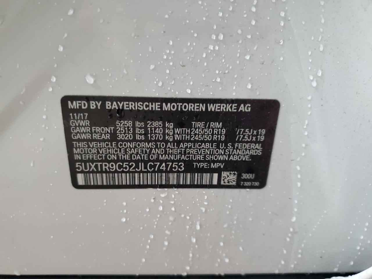 BMW X3 2.0 2018 г.в., Полный привод (5UXTR9C52JLC74753) из США