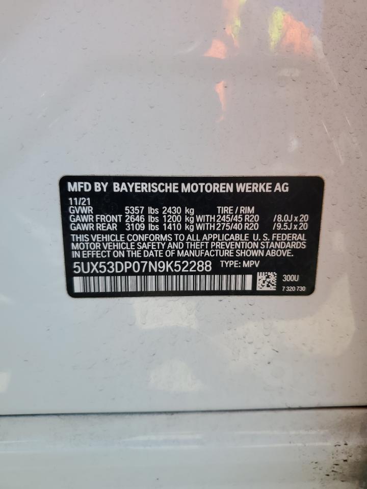 BMW X3 2.0 2022 г.в., Полный привод (5UX53DP07N9K52288) из США