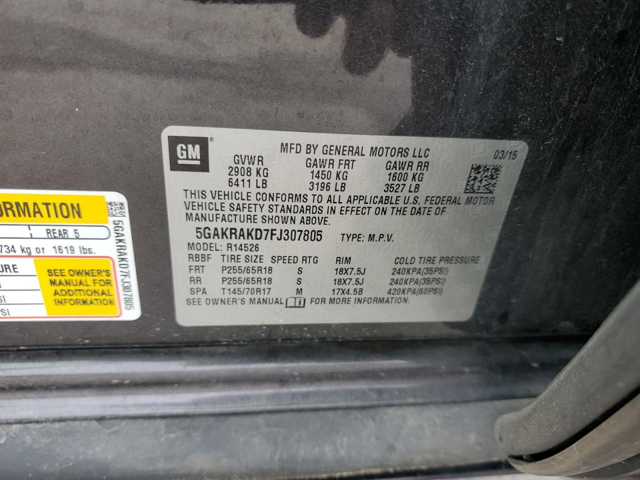 Цвет БелыйЦилиндры 6VIN 5GAKRAKD7FJ307805Состояние Заводится и едет (проверено)Повреждение Передняя или задняя