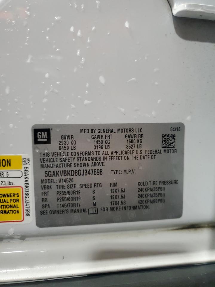 Цвет БелыйЦилиндры 6Привод Полный приводVIN 5GAKVBKD8GJ347698Состояние Заводится и едет (проверено)Повреждение Передняя или задняя