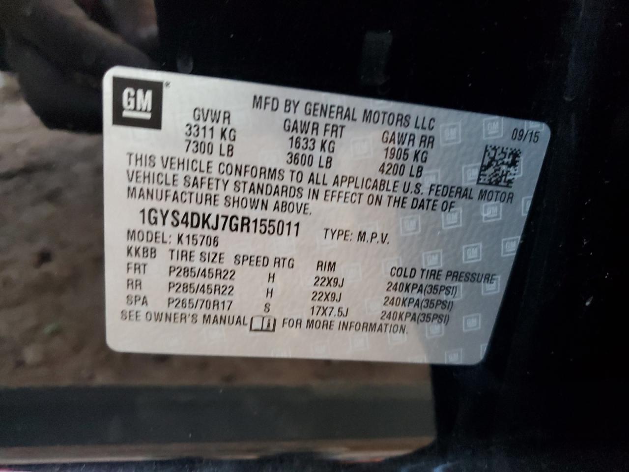 CADILLAC ESCALADE 6.2 2016 г.в., 4x4 с задним приводом (1GYS4DKJ7GR155011) из США