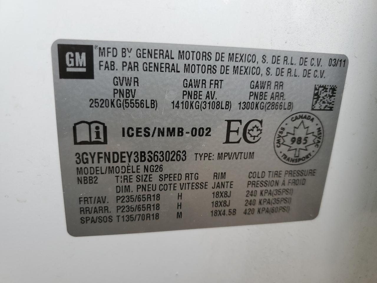 Цвет БелыйЦилиндры 6Привод Полный приводVIN 3GYFNDEY3BS630263Состояние Заводится и едет (проверено)Повреждение По бокам
