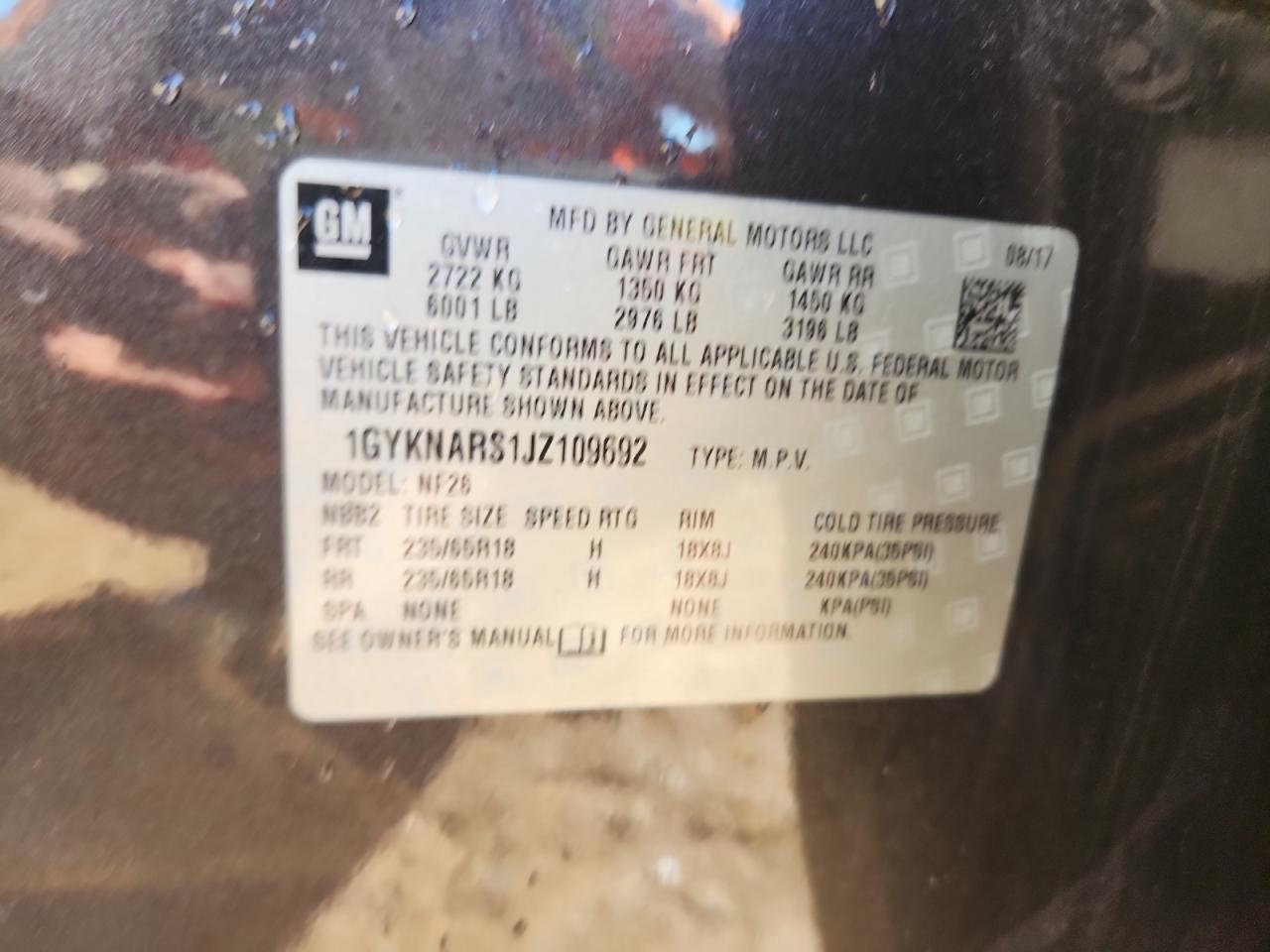 Цвет СерыйЦилиндры 6VIN 1GYKNARS1JZ109692Состояние Заводится и едет (проверено)Повреждение Передняя или задняя
