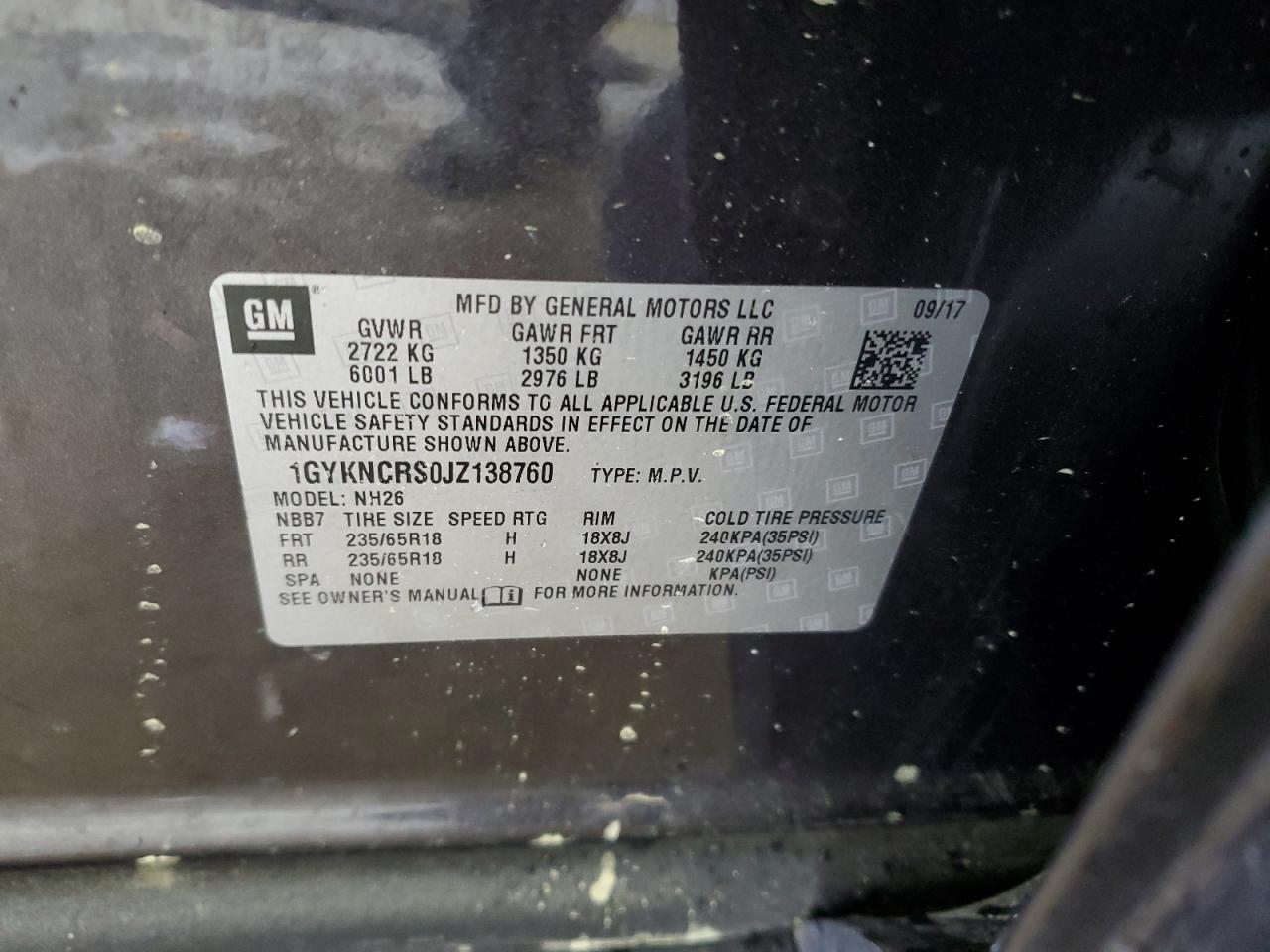Цвет СерыйЦилиндры 6VIN 1GYKNCRS0JZ138760Состояние Заводится и едет (проверено)Повреждение По бокамДата аукциона 2025-11-12
