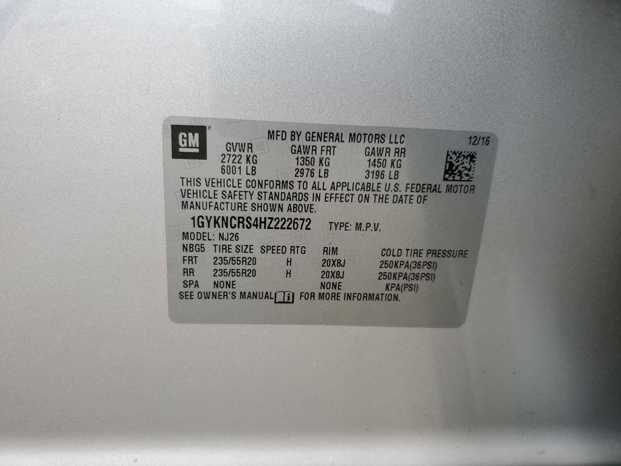 CADILLAC XT5 3.6 2017 г.в., (1GYKNCRS4HZ222672) из США