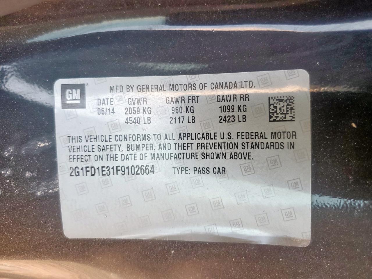 Цвет ЧерныйЦилиндры 6Привод Задний приводVIN 2G1FD1E31F9102664Состояние НеизвестноПовреждение ЗадняяДата аукциона 2025-11-06
