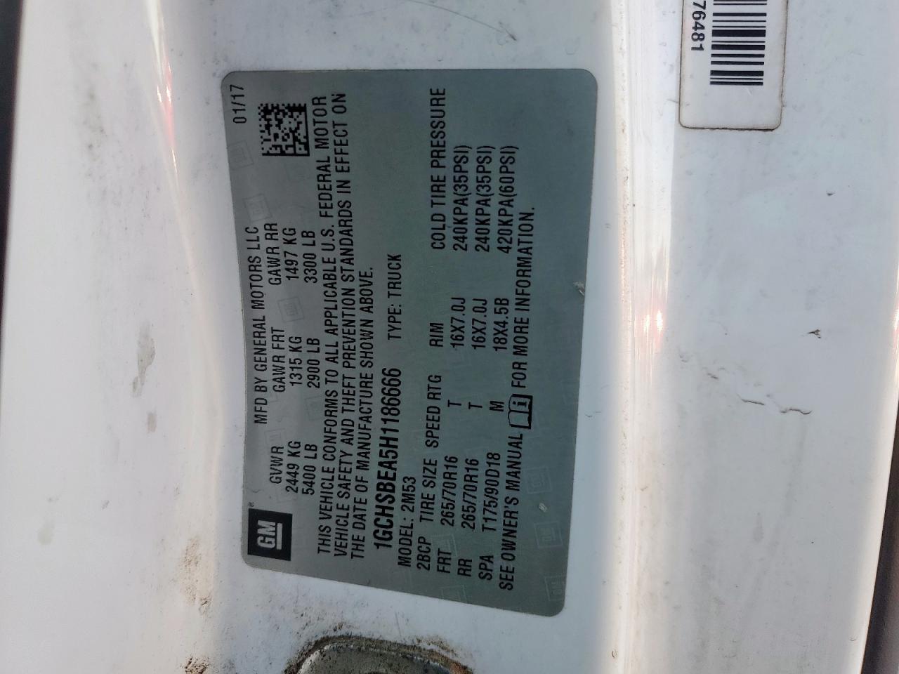 CHEVROLET COLORADO 2.5 2017 г.в., Задний привод (1GCHSBEA5H1186666) из США