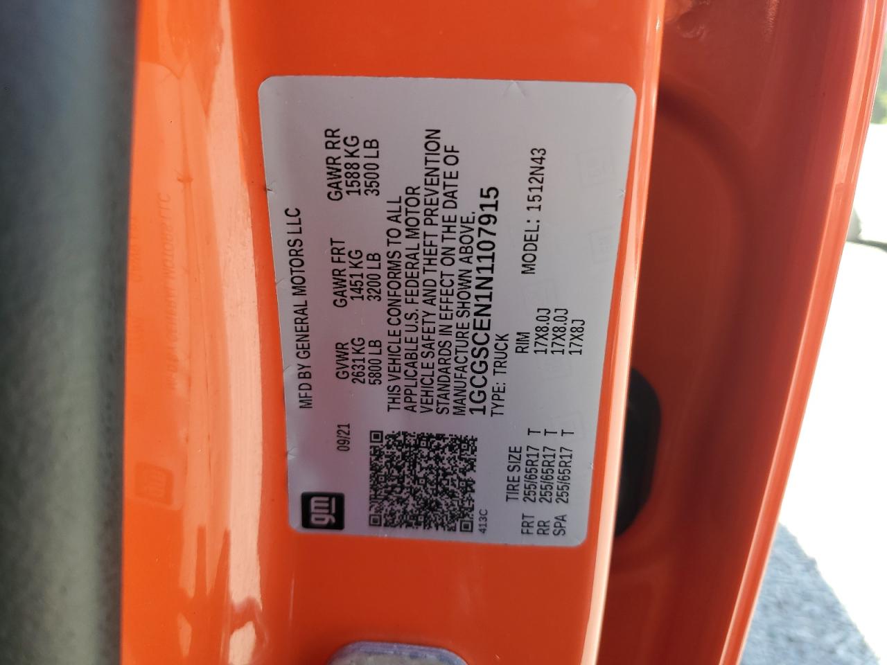 CHEVROLET COLORADO 3.6 2022 г.в., Задний привод (1GCGSCEN1N1107915) из США