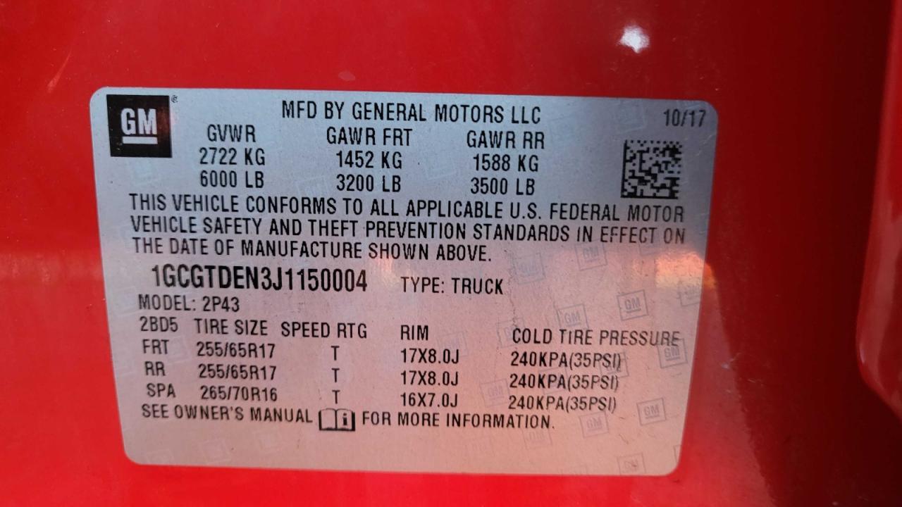 CHEVROLET COLORADO 3.6 2018 г.в., 4x4 с задним приводом (1GCGTDEN3J1150004) из США