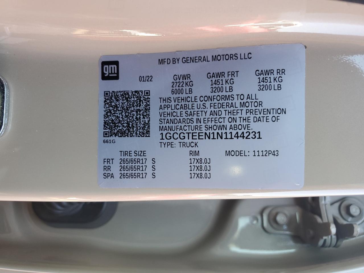 CHEVROLET COLORADO 3.6 2022 г.в., 4x4 с задним приводом (1GCGTEEN1N1144231) из США
