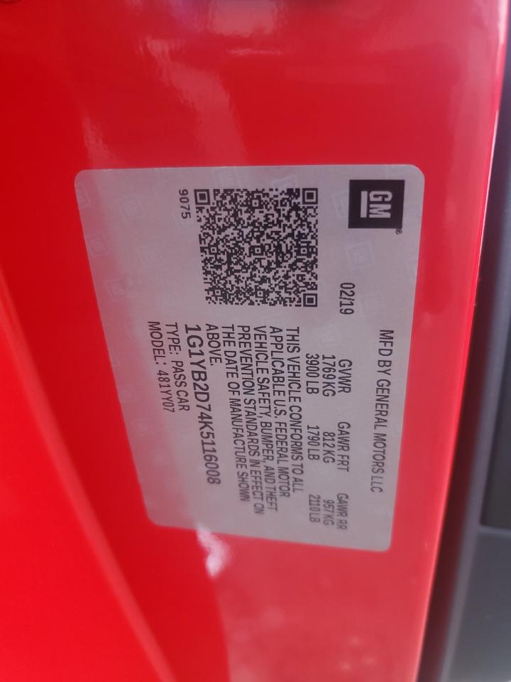 CHEVROLET CORVETTE 6.2 2019 г.в., Задний привод (1G1YB2D74K5116008) из США