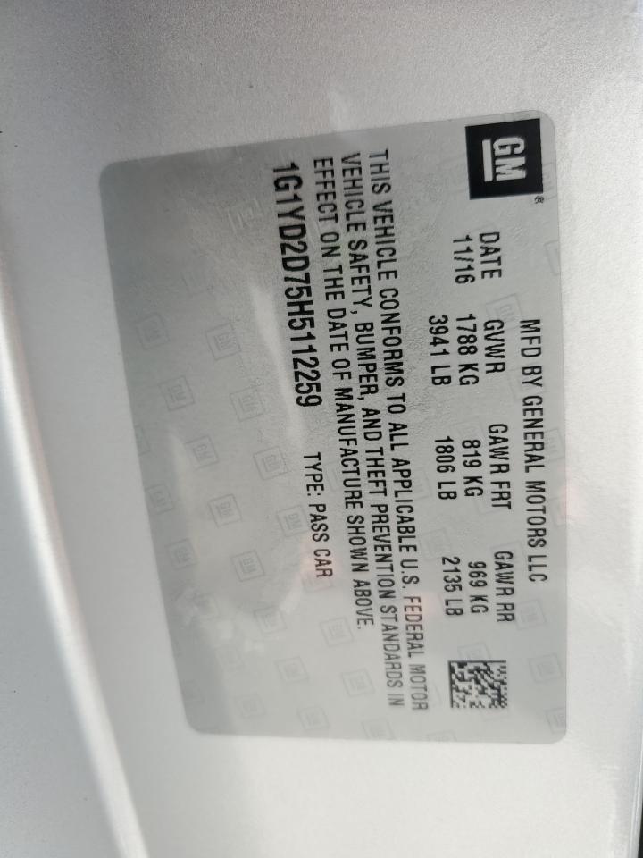 CHEVROLET CORVETTE 6.2 2017 г.в., Задний привод (1G1YD2D75H5112259) из США