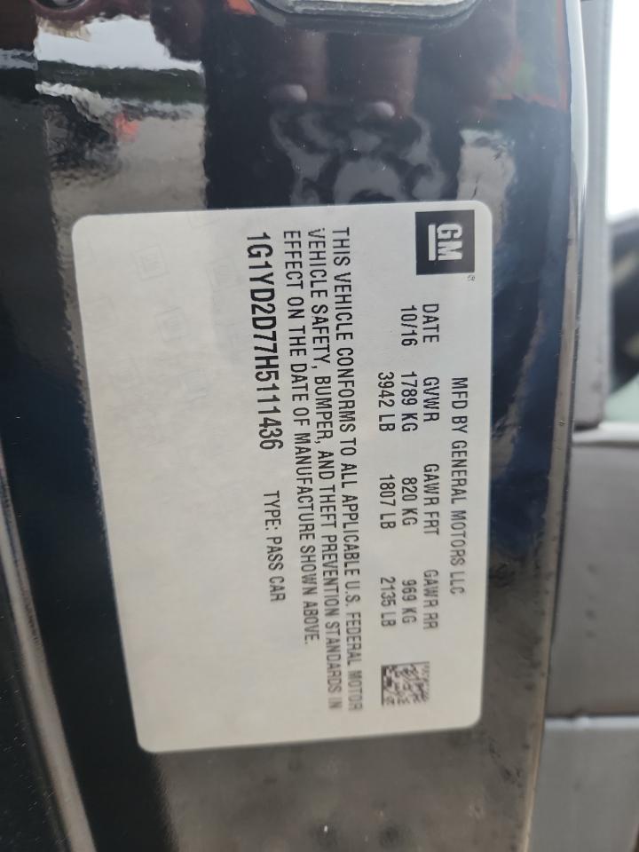 CHEVROLET CORVETTE 6.2 2017 г.в., Задний привод (1G1YD2D77H5111436) из США