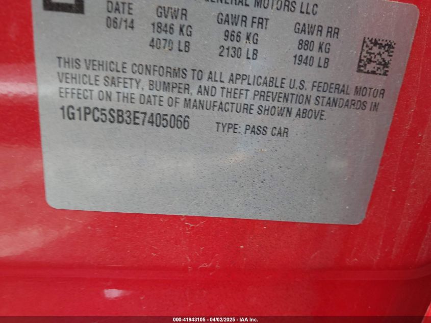 CHEVROLET CRUZE 1.4 2014 г.в., Передний привод (1G1PC5SB3E7405066) из США